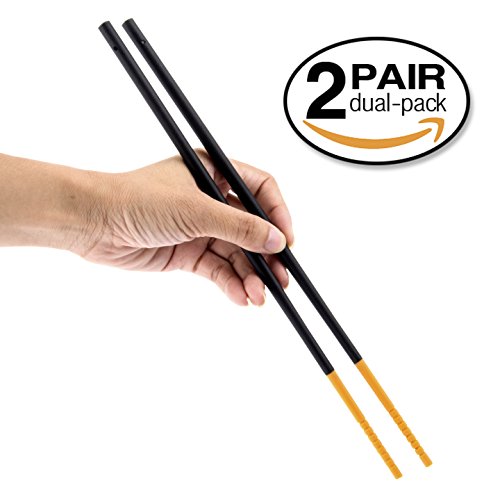 "Gripsticks" Silicone-Tip Long Cooking Chopsticks - Dishwasher Safe, Black & Yellow, 30cm (11.8 inch), 2-Pair